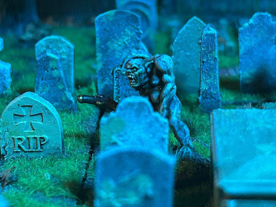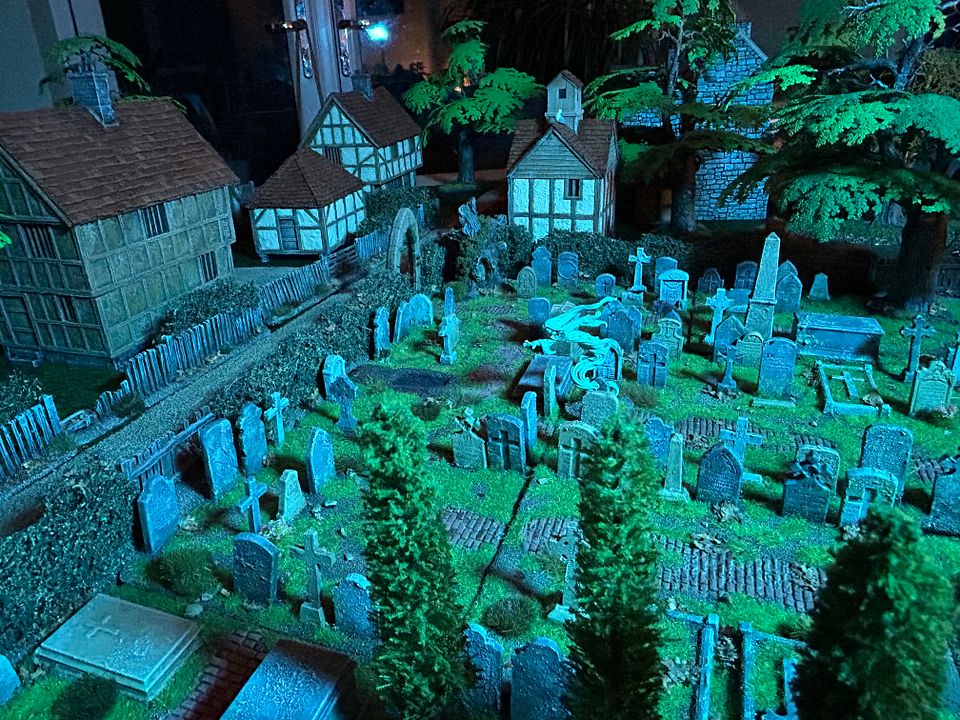 That's the biggest gaming cemetery that I have ever seen. The lighting and mood is spectacular!! Did you game in that light level too?? It sure would have been epic!!