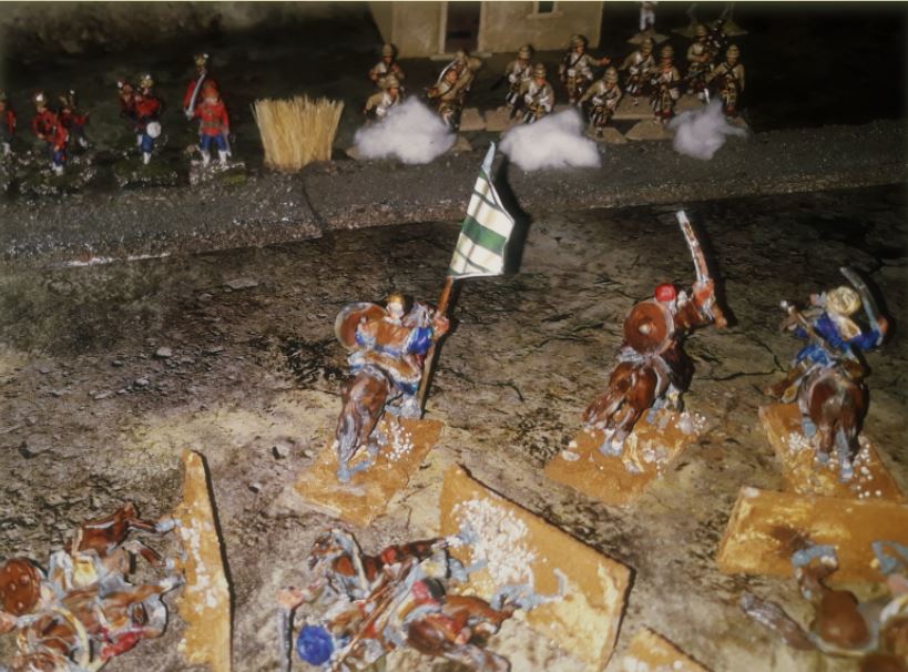 Wali khan irregulars fire on the highlander with only 1 hit, but with an outstanding 11 Lt Craig overcome his haplessness and the highlanders don’t pin! On the contrary the other two units fails the command to double and stop impressed by Kalindi Khan retreat. A key turn point of the battle?