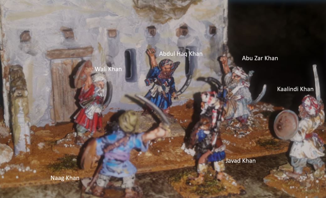 Few minutes later, with the crossroads left well behind, the Raj units saw hundreds of tribesmen running towards them to close before the arrival into the safe defenses prepared by Colonel Fullerton.