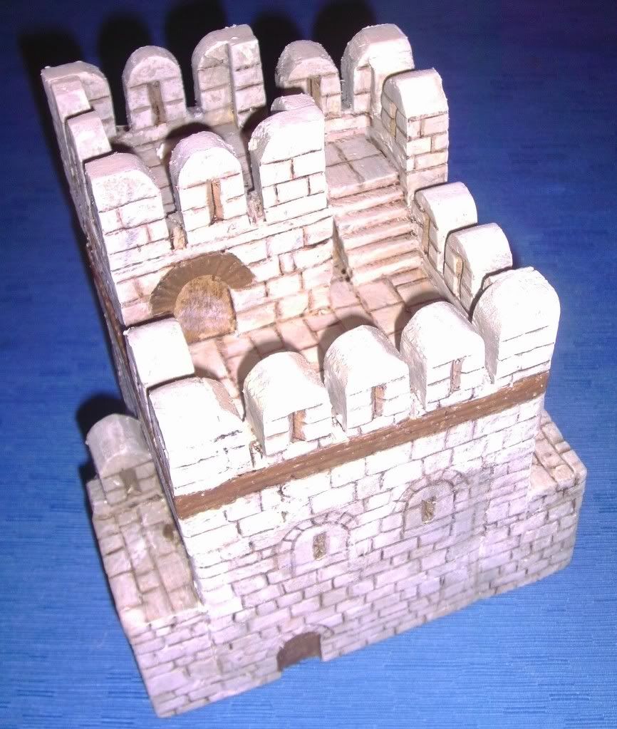 The roofs do not lift off on any of my models. My hat goes off to those who do model the internals of buildings. I find it challenging enough to design and model the externals in detail. My buildings are more for show but wall walks, towers etc have been designed with the placing of figures in mind. It is a relatively simple matter though to work out who is where for gaming purposes.