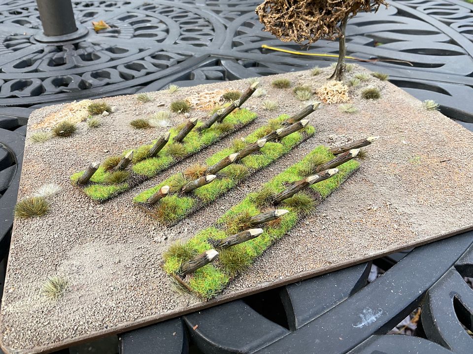Whilst waiting, I’ve also made up a few strips of stakes (using Hobbycraft twigs)