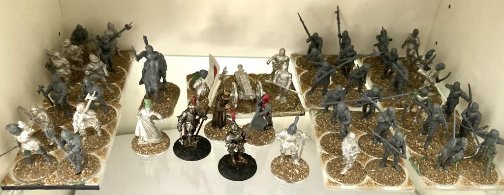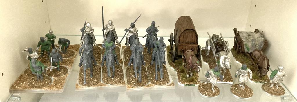 Since assembling this lot, I’ve decided I need more banners so have a couple of knight sprues coming. Also, as the Army Commander is on foot but has a mounted alternate, for completeness he’ll also need mounted alternates for his banner and musician.