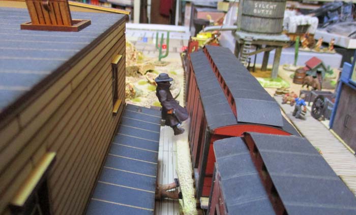 That shadowy figure between the coal car and 1st carriage is Sheriff Snapcase doing a magnificent impersonation of someone hiding.