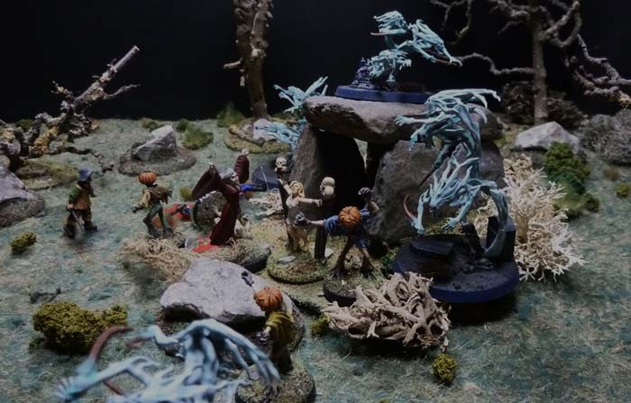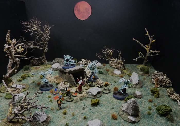 “It all seems quiet” muttered Snapcase, “we’ll just move forward, slowly like, no noise until we can see the Barrow clearly”. “Try and keep low and take advantage of the cover” he added unnecessarily.