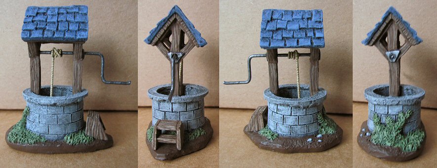 Not much painting done, but I did manage to convert and paint this Lemax well I picked up at a discount. The scale isn't perfect, but stylewise it fits in well. I replaced the rope and handle, removed the buckets and added a small step.