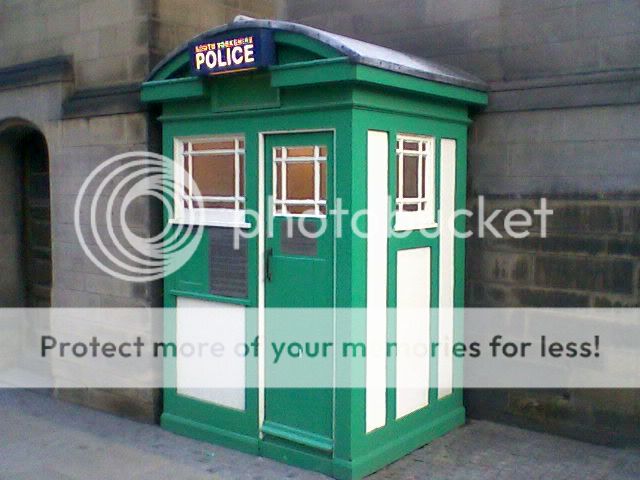 Except, of course, it's not a TARDIS, but a Glaswegian Police Box, like the ones in Queen Street station and on Buchanan Street. No trademark infringement there, no sir. That's why the front door panels are quite different from anything the BBC has ever used.