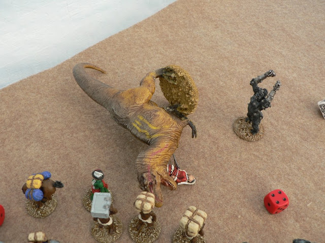 After which, the Queen managed to get stuck under a dino that an ape with huge steam fists had just put to rest. Gawd!