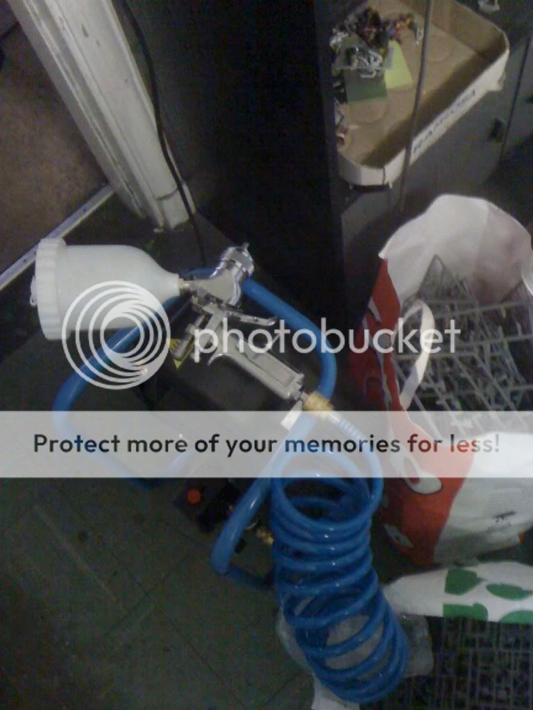 I'm a lazy sod, and as the club is home to macho men with a soft side for loud toys, I bought a paint gun and hooked it up to the monster known as the club compressor...
