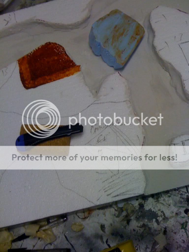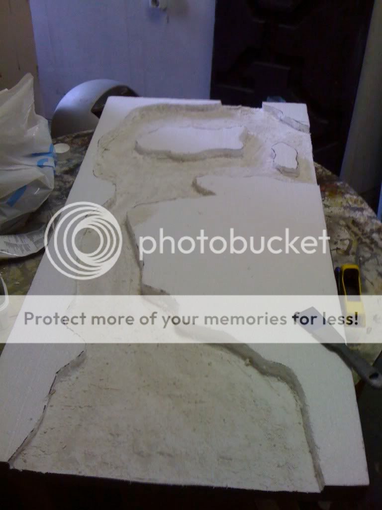 So at last, time to throw on the concrete-mix. Its a mix of filler, PVA glue, sand and some paint so I could see where I was painting. All credit goes to Captain Blood for this