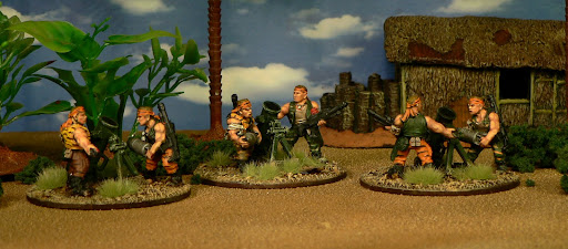 Tiger ForceInspired by the G.I.Joe action figures of the same name. Again I'm using rubbish figures that wouldn't get any love otherwise. The different guys aren't painted the same way as I used this first stand to find out how to paint the skin. (and I fogot stripes on the bandanas).