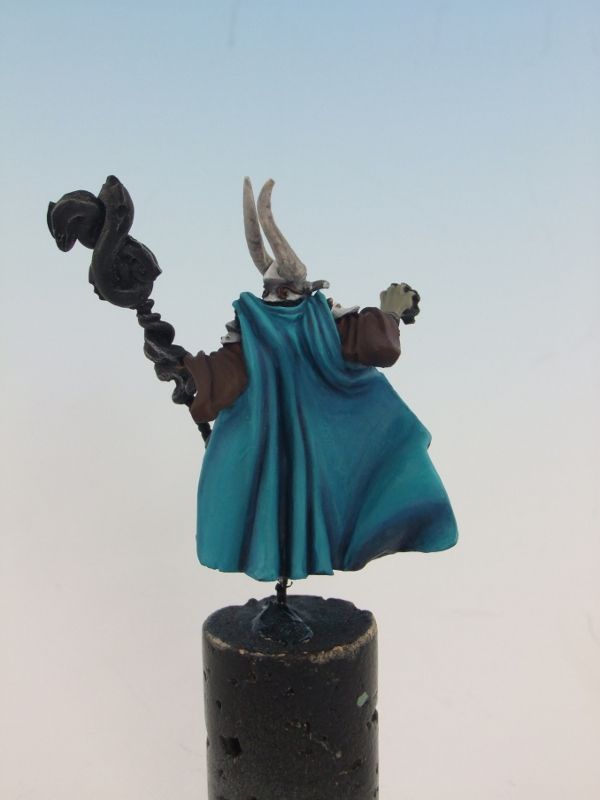 Turquoise cloak (on the interior some sort of fancy pattern in a light blue/white - on the reverse a large and elaborate tzeentch symbol in NMM gold/yellow)