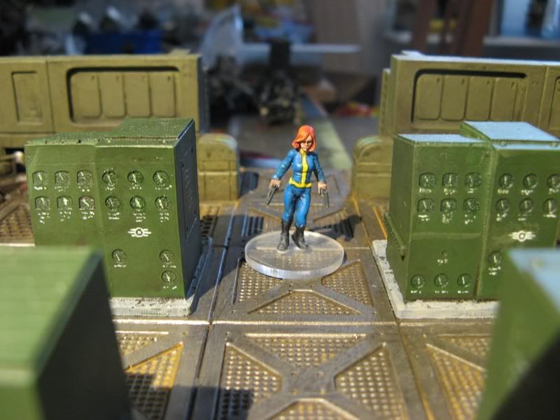 First glue sand to form the outline of the puddle, paint it in your choice of earth colour. First I gave the goo area a layer of PP Wurm Green, Then I started to mix in Vallejo game colour Livery green (GW bilious green I think) After that I gave it a coat of Vallejo transparent green and when it was almost dry I added Vallejo Stillwater swirled it around untill it covered all the areas I wanted and let it dry. (actually I was inpatient so I put it in the oven at 80 degrees C untill it cleared up ca 1-2 hours in a hot air oven).