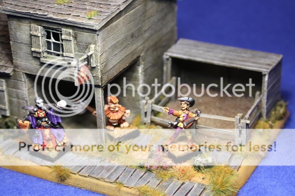 That is a SPLENDID Tavern with some interesting angles & details...GREAT modeling & painting. It's just generic enough to see uses in some of your other games as well. VERY WELL DONE!