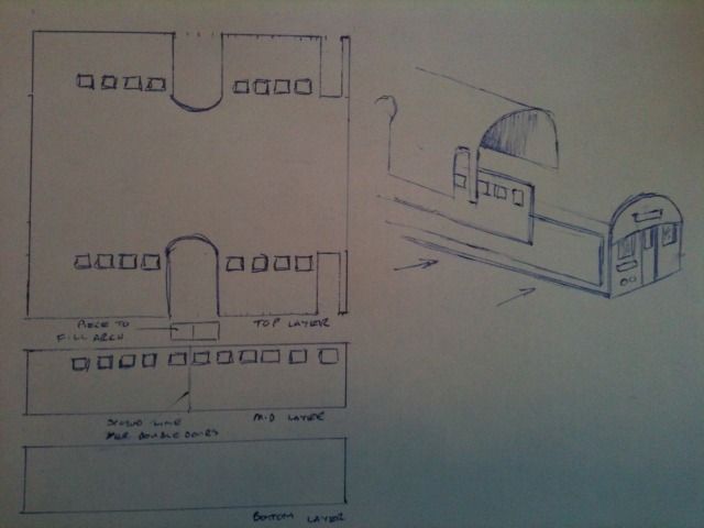 The build is all plastic card, built up in layers, with the top layer being really thin plastic card so that it bends over to give the curved roof. I hope this helps....