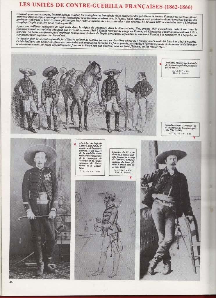 Re the Imperial army, many units continued to use the pre-1865 issue uniforms right up to the fall of the régime. The question regarding the psychedelic 1865 uniforms is how widely used they actually were : in his Osprey book, René Chartrand states that only a few units actually wore them, such as the 1st (Emperor's) battalion of the 2nd line battalion. Most of the Imperial forces appear to have continued to make do with a mixture of French and Mexican issue uniforms, especially since the new red jackets were particularly hated.