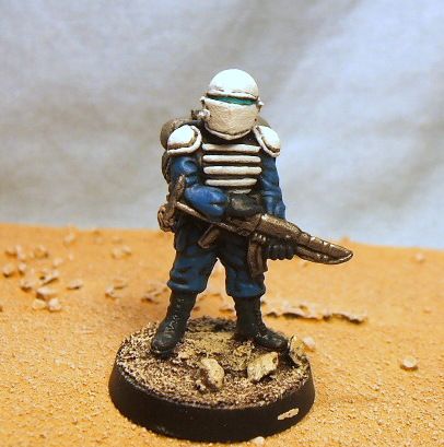 I totally agree that it was a bit of a let down that those bubble became so noticeable on the pictures, because as you say - they are hardly noticeable on the gaming table. Next up is a small squad of Mercenary Marines (ex-Capitol Free Marines by Mark Copplestone, repainted to fit in with my Mercenary force... who are in desperate need of a name!).