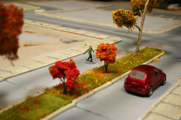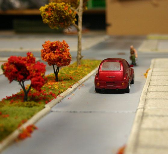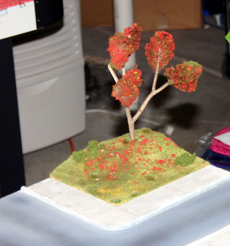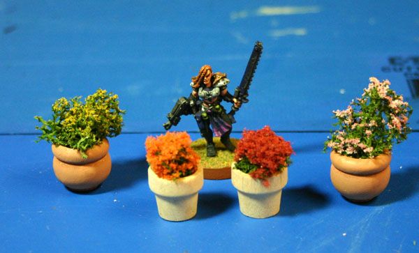 As a parting shot, here are some of the details I'm working on. Flower bushes and potted mums for the flower shop. Mums? Yes, I decided I wanted Gray Haven to have a nice fall setting. Kind of a creepy time of year, perfect for all the nasties that will be around.