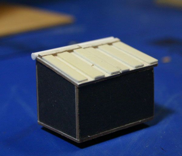 This was the hardest modification of all four. I made a stepped parapet from the base material and had to fully cover two sides of the building with clap board styrene sheet, as this is a end unit.