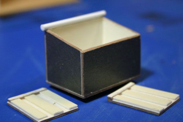 The insides. I painted and weathered and even tried my hand at using scrapbook paper here.