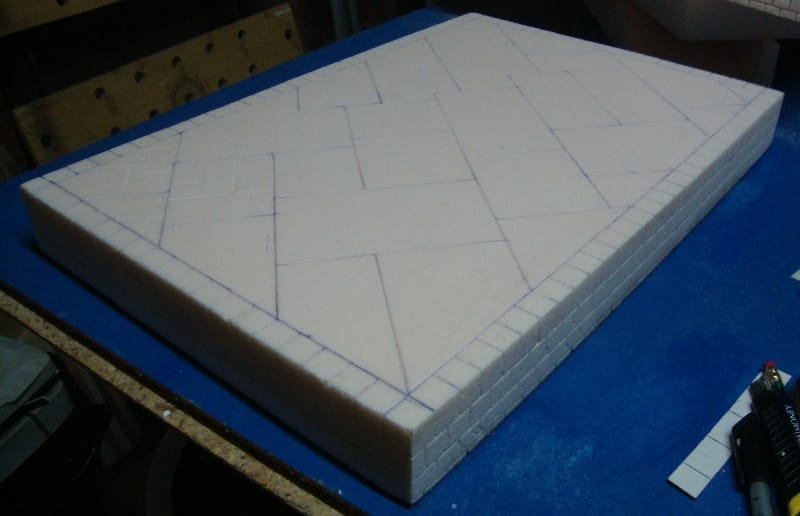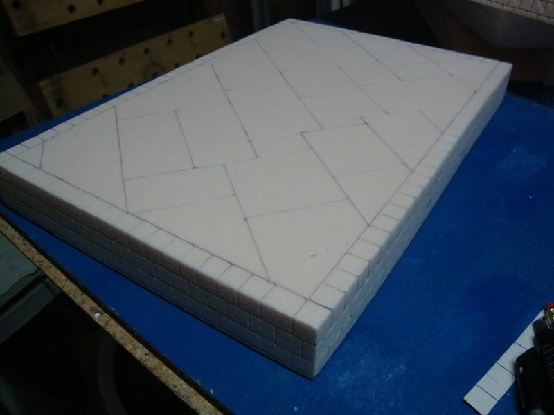 So....taking models to paint during your lunch break will get you strange looks, but carving bricks and paving into a bit of pink foam won't?? lol lol