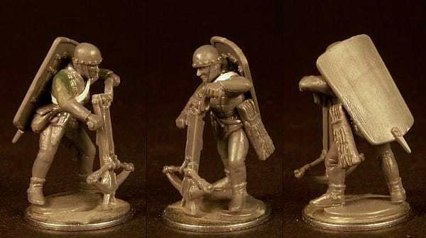 Last, but not least a single crossbowman reloading and protected by a pavise on his back, who will support the above group. That's the first batch finished and ready for paint, not bad for a days work, I think. Painting will be delayed for a couple of weeks as I want to build some more troops first.