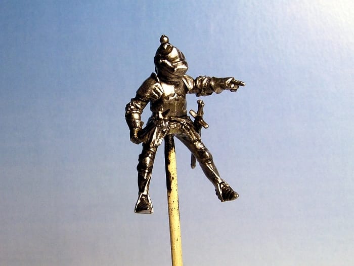 And a modified man-at-arms with new left arm after carving the original one away; only silver areas painted, WIP.