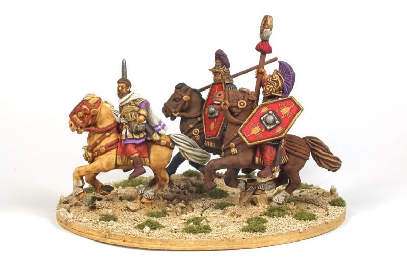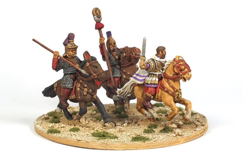 I decided to make a few command stands this week.  My EIR have a rather nice command stand, using some of Foundry's commanders and 'hangers-on', and my Sassanids have the rather nice Aventine Miniatures King's elephant, but my 3rd Century Romans just had a rather lonely general on horseback.  I'd painted up a chariot for my Britons ages ago, but had never got around to basing it up properly.
