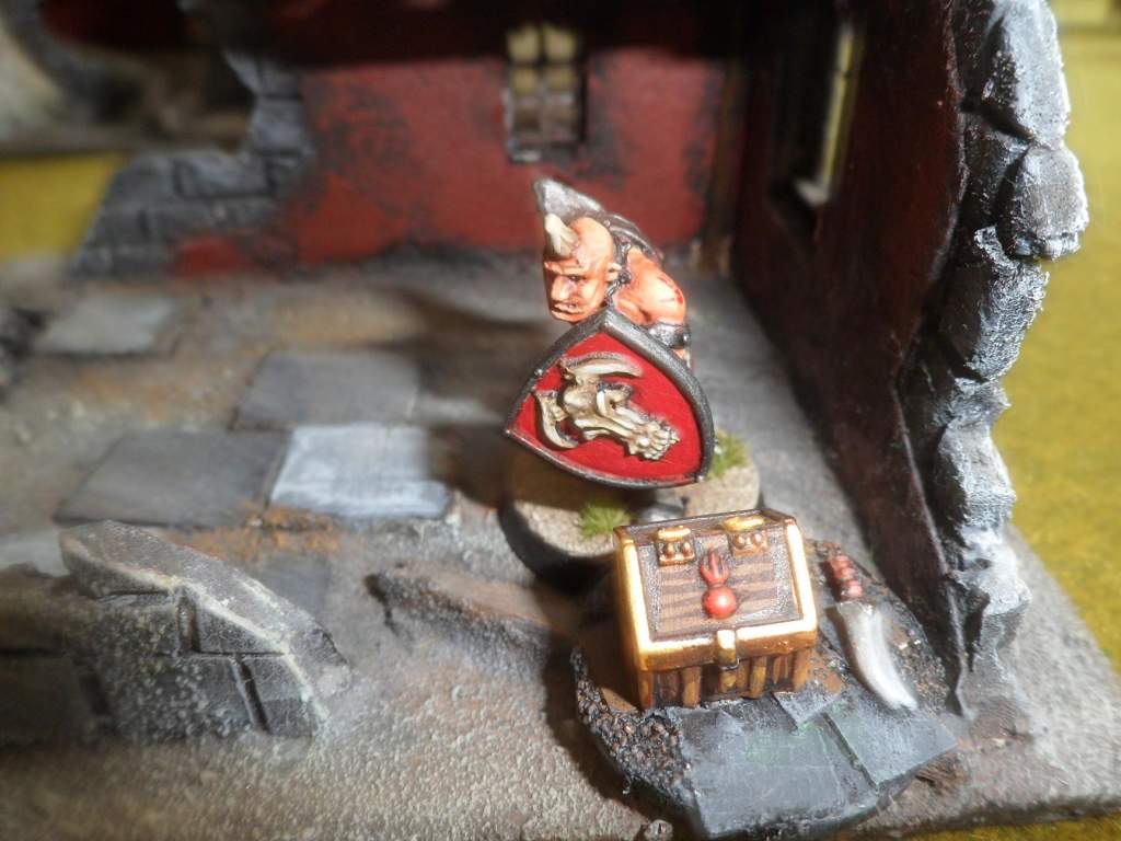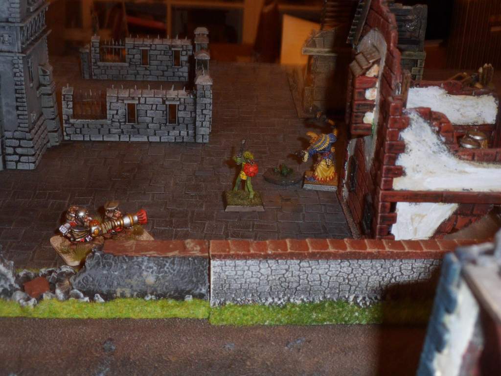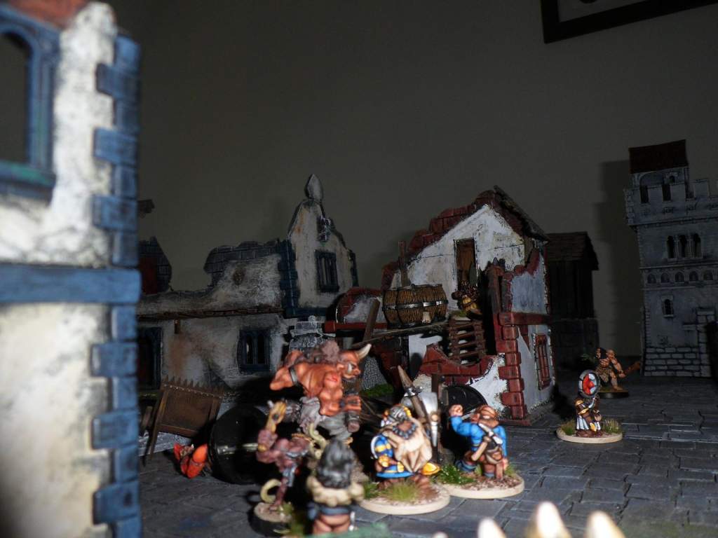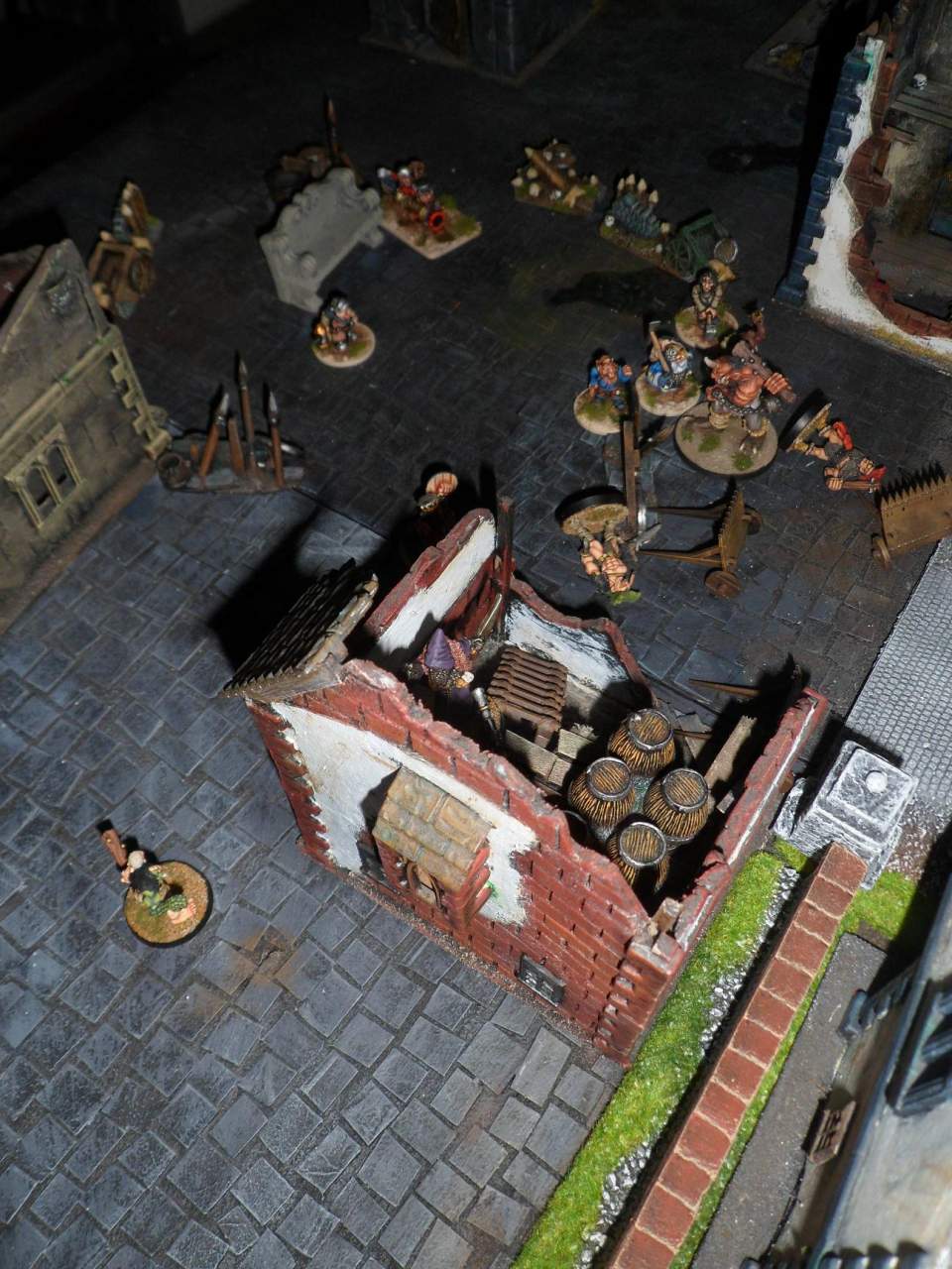 The dwarbes are heavily out numbered as the chrushing force of the PFs advance, the Thunders that took up positions in the building quickly regretted it as the PFs moved in and mashed them tha,ks to the Warband common skill Pit Fighter!!!!