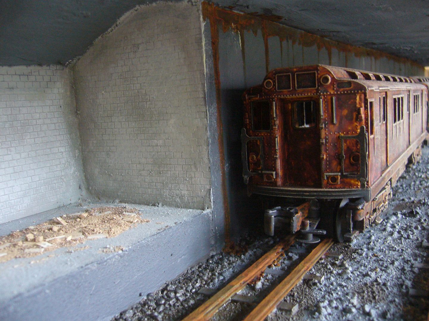 Pretty dull!  I've intentionally left the tunnel with minimal detail, and the walls untextured, because it will be virtually hidden by the fact that it is recessed 6" under the table surface AND there will also be a subway train sitting in front of it the whole time.   :wink: