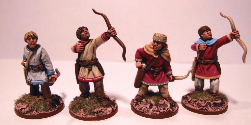 Same recipe as before - heavy really basic brush of undercoat colours, sepia wash by Vallejo, really dry brushing of iraquian sand (VAllejo) and then fiddly work on skin and hair.. bucklers and bases to go later.