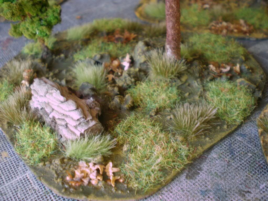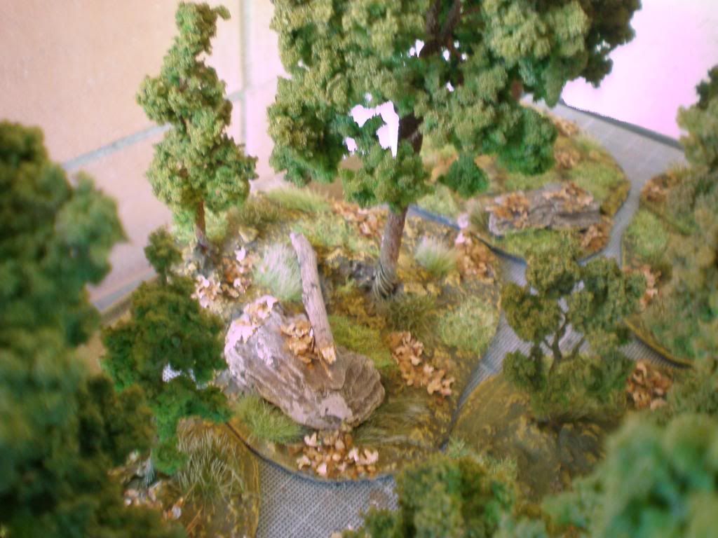 I applyied some rocks (pieces of bark), light and dark green tufts, static grass and leaves (obtained from dry seed pods of the birchs) .