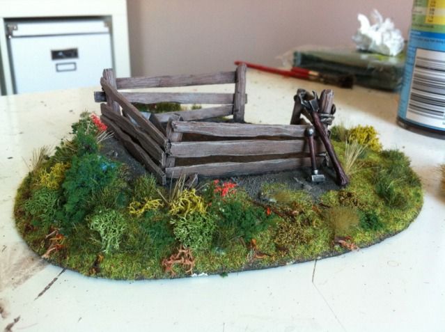 The dead tree hopefully won't look dead when I'm finished. I plan to hide the wires with a big bit of foliage to make it look like a drooping swamp tree. I meant to take a pic before I started undercoating! I totally forgot! Doh!! The mix of white/black undercoat was only because I ran out of the black halfway through....