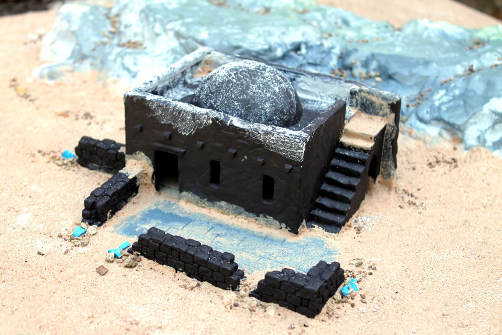 The Renedra mud brick house on the other hand, is sorely disappointing. It's a nice looking building superficially - especially with the addition of the dome from the add-on extras kit. But it doesn't fit together well at all. I had to spend literally hours filling and filing all the joints with green stuff, PVA-and-talc gunk, and various other fillers to get rid of the myriad of all-too-obvious joins all over the bloody thing. Really a lot of extra work. Not good at all :(