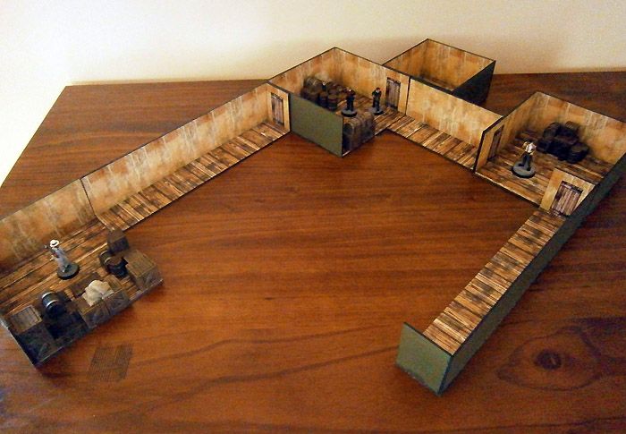 Here are some pics of the basement system. It can be set up in various configurations and there are various sneaky stair wells scattered throughout the buildings. I decided on "open" pieces for ease of play and visibility.