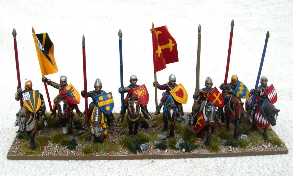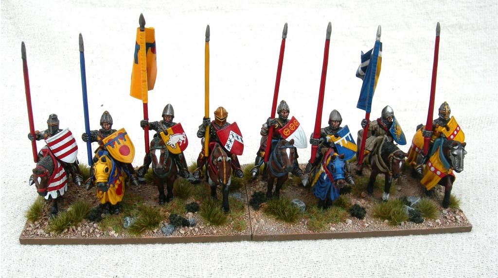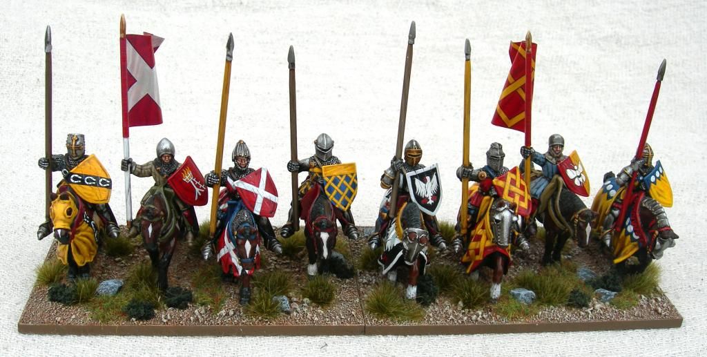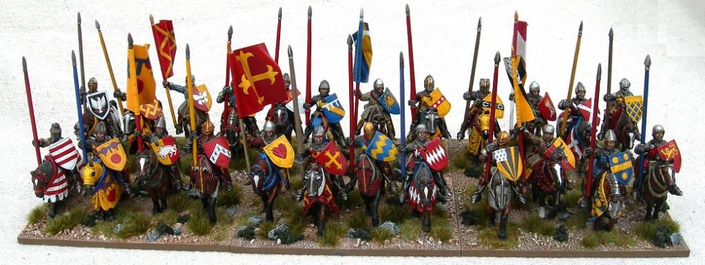 I finally finished basing the English Knights for my early HYW army it only took me a year! Unfortunately real life kept getting in the way but things are back on track now. The figures are Front Rank with a few old Citadel Bretonian standard bearers.
