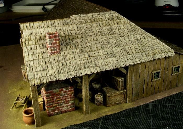 Excellent scratbuilding and quite a few tips to bookmark Have you considered the Fenris Games new shingles? FSame format as the Wild West ones (strips) but in .5mm styrenehttp://www.fenrisgames.com/shop.html#!/~/product/category=2457557&id=16079262Possibly a lot closer and cheaper that sending all the way to the US.