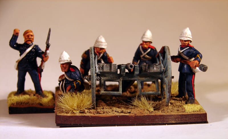 Have not had a spare moment to take any pictures but the project is still alive.  Actually managed to paint a few units in April and May and get in a few Black Powder Zulu games. Not the best lighting but here is a picture of the first artillery unit I completed.