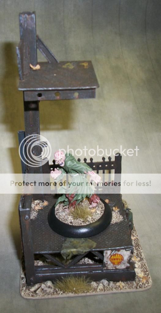 Here is the evil doombringer, a rad priest that wants all norms dead, at a lookout post, a small piece of PA terrain I scratchbuilt from bits I had.  Sorry if its a bit blurry.
