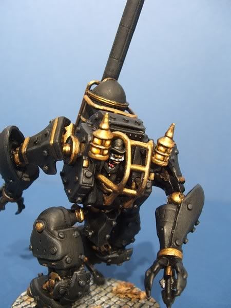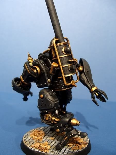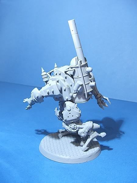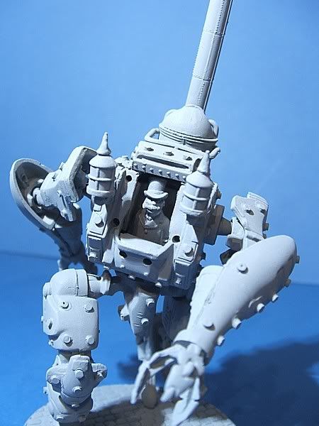 It looks like a futuristic walker with a boiler and some lamps stuck on it. Maybe the rivets and paint-job will bring it to life in a Victorian way?
