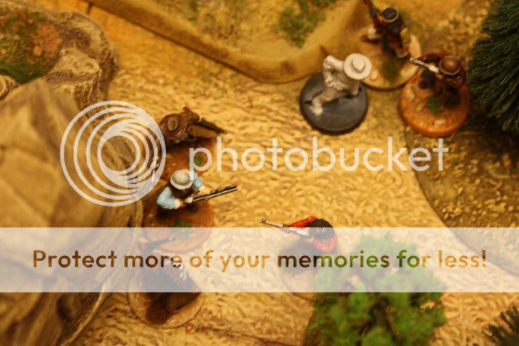 A short ranged (and seriously inaccurate!) firefight quickly ensued with the numbers of the Outlaws threatening to overwhelm the small group of Apache.