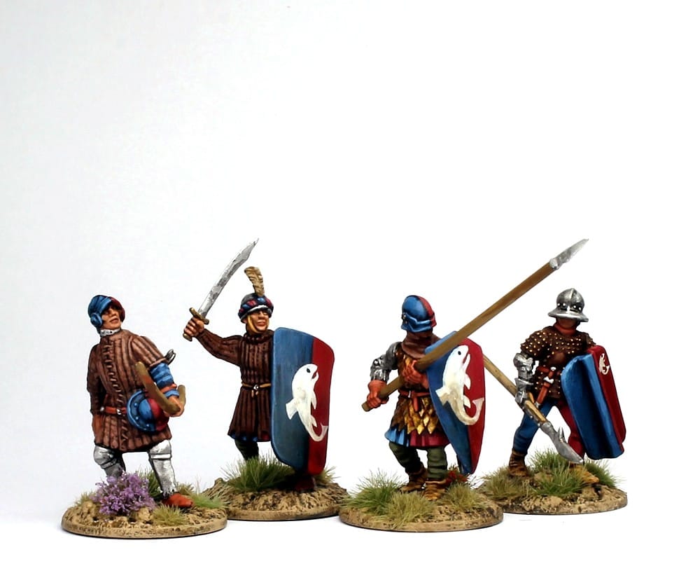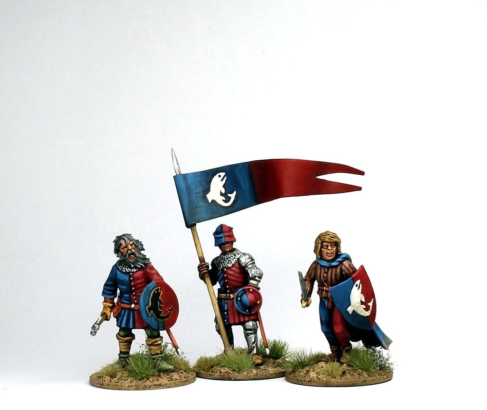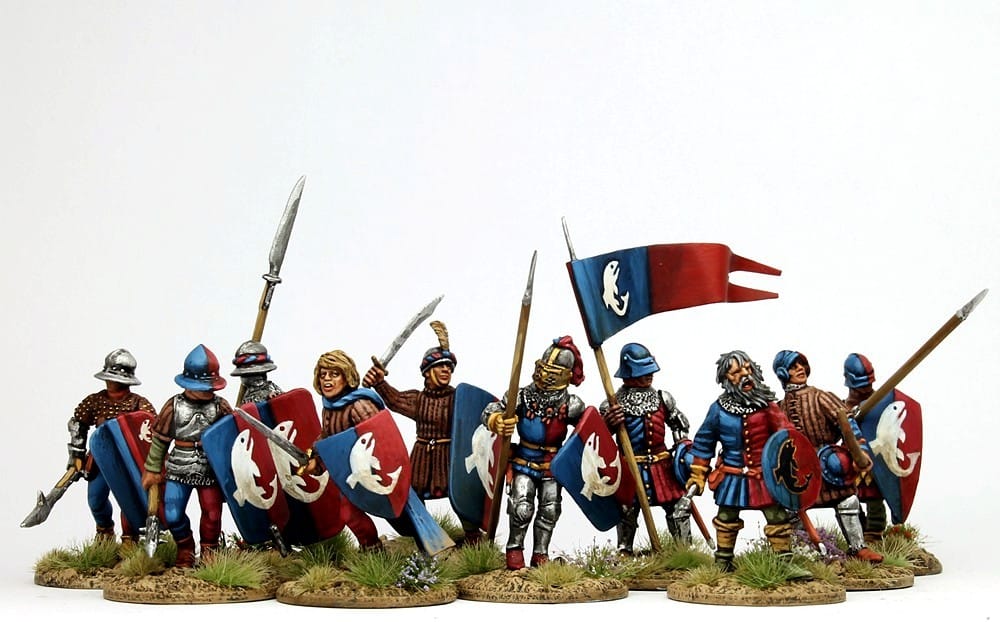 Now, when I put these new purpose built and painted Tully additions together with my Yorkist ringers (the ones who aren't wearing Sunne in Splendour badges, but do handily have the same 'murrey and blue' parti-coloured scheme as the Tullys), I have a very serviceable Tully force of 24 figures...