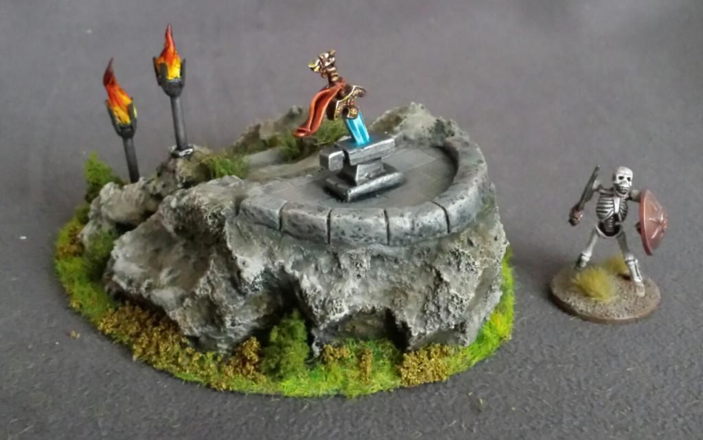 The stroll through the woods & the sword in the anvil/stone are BEAUTIES! The Woods has a certain idyllic charm to it. AND the torches & glowing sword are SPLENDID effects in the Stuck-in-Sword. GREAT WORK all around!