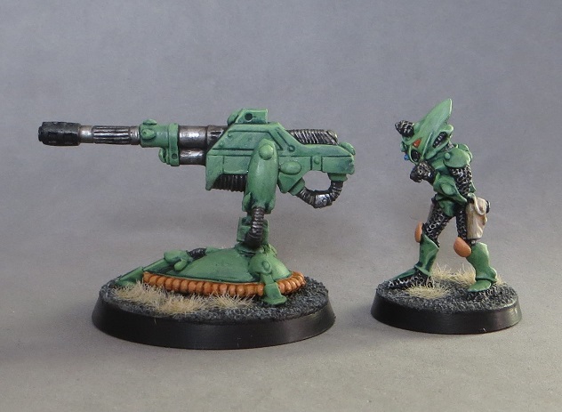 Here's a couple of recent products of the painting table. First up is an Eldar d-cannon and single crewman painted last week to round out the warband I'm using for my Inquisimunda campaign: