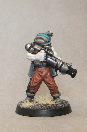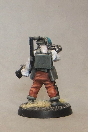 My newest paint job was out of necessity - my poor two headed mutie Gron-Slom got eaten in last week's Inquisimunda game. I wanted to replace him with something more effective, so pulled out an old Citadel Rogue Trooper figure and made an Afriel strain trooper: