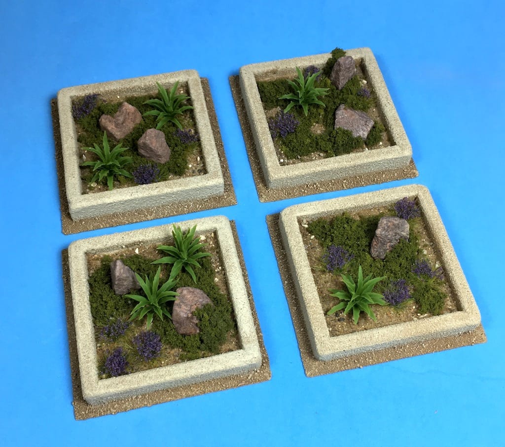 Made from the usual blue foam with sand coating.  Ground cover plants are homemade clump foliage and grass tufts with coloured sand added for flowers.  Green leafy plants from ebay as before.