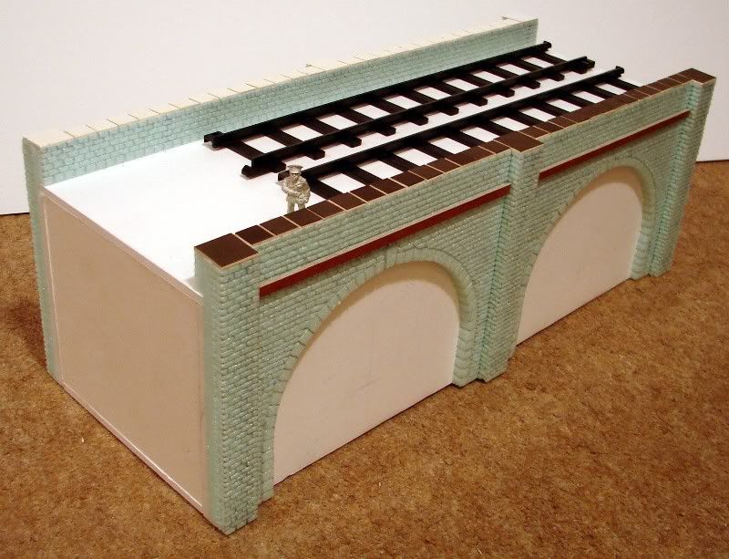 That was going to be it for brickwork on the arches. However, I have now decided to put brickwork on both sides of the arches so that it gives even more variation on a table edge, but also allows me to place the arches across the table and not just on an edge. The idea that prompted this was that I could use the arches for an urban version of the Great Train Robbery