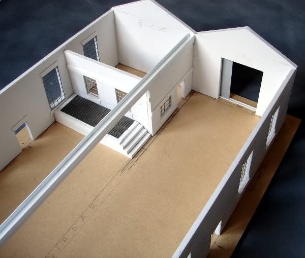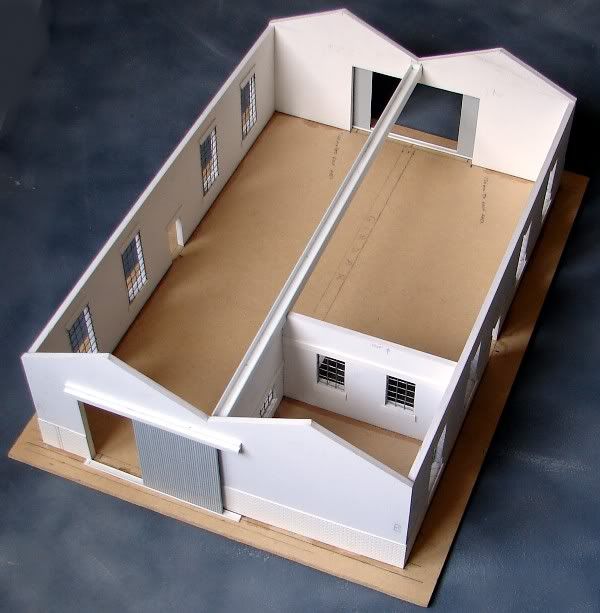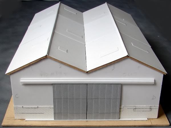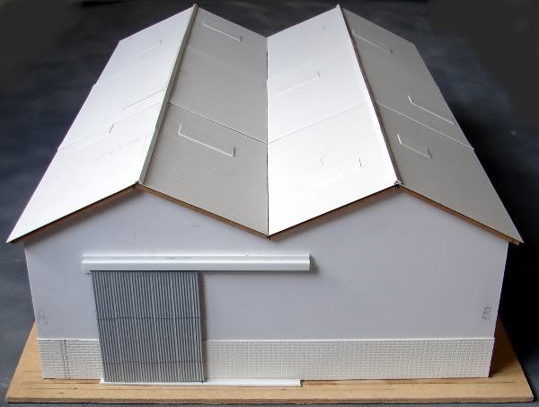 The doors (which open & close) are Wills corrugated iron, with runners of various angle & U plastic strip.