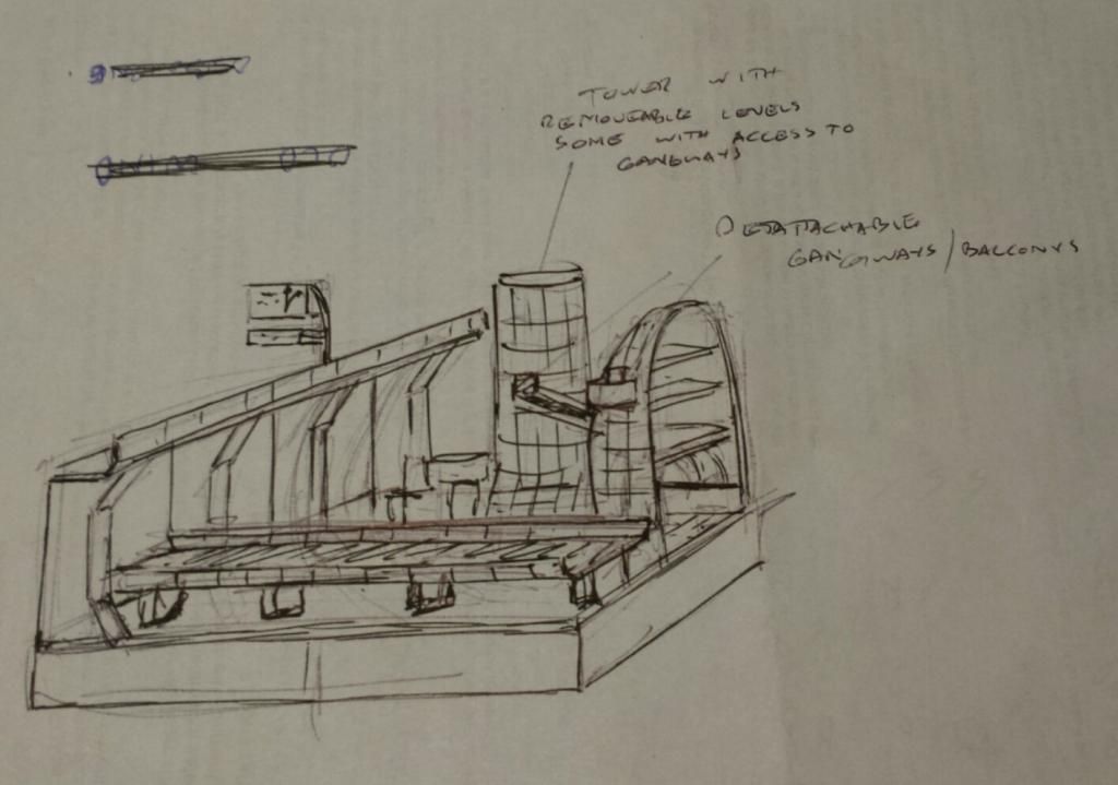 This makes me think of a couple of necromunda boards, this classic vertical one might contain some ideas of how to arrange a vertical gaming area