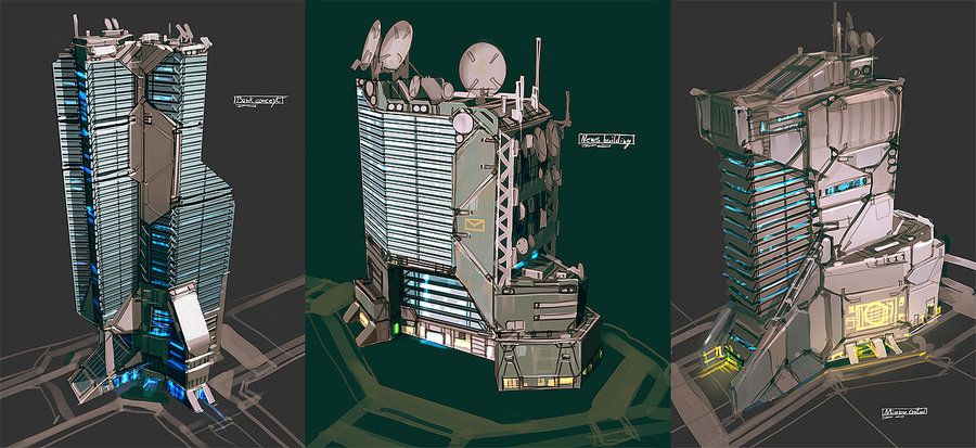 Style-wise I'm going to use these pics for reference. I've searched google for concept buildings and such like....