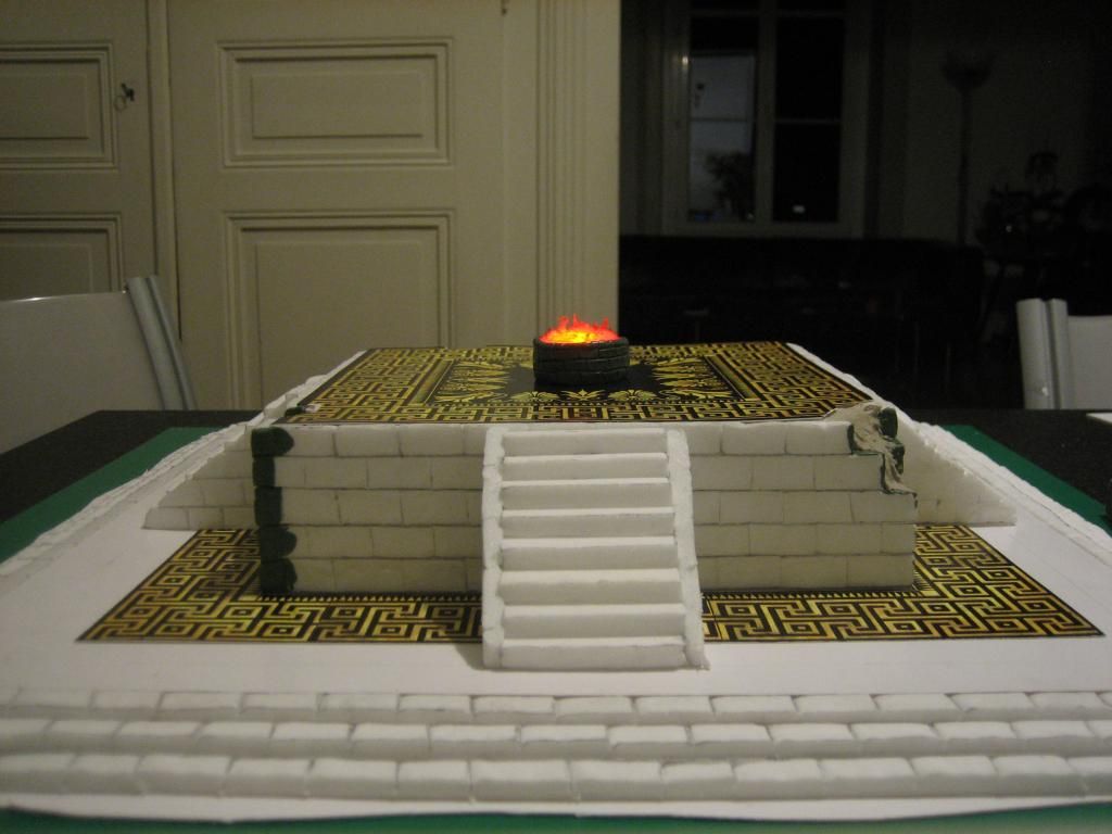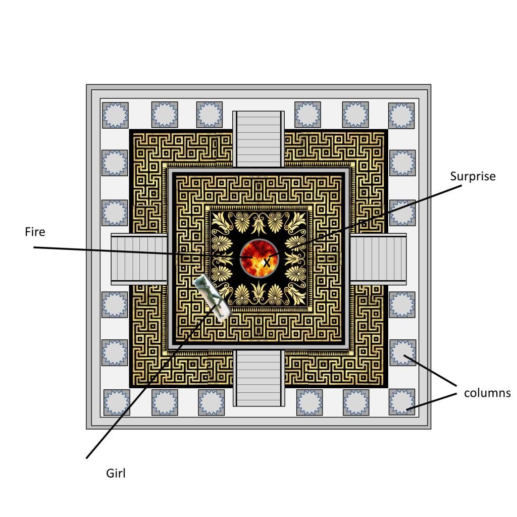I ordered some cheap wedding cake columns. They are not amazing but represent excellent value for money. The girl stays, but the apple, the statue, the altar and the braziers are all gone. Instead I will build a huge fire in the middle. There should be something on top of the fire which will be very challenging to sculpt. As I'm not sure I'll succeed at creating it, I won't talk about it for now, and in case it fails, I have a plan B in place.